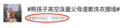 事情發(fā)生后,熊孩子的父母“兵分兩路”迅速補救:孩子媽媽帶著孩子挨家挨戶敲門道歉,并承諾把臟的衣服讓孩子手洗恢復(fù),孩子爸爸請高空作業(yè)的保潔公司幫忙恢復(fù)墻體,要求孩子一直站在太陽底下看著,直到清潔工人清潔完畢,方可離開。