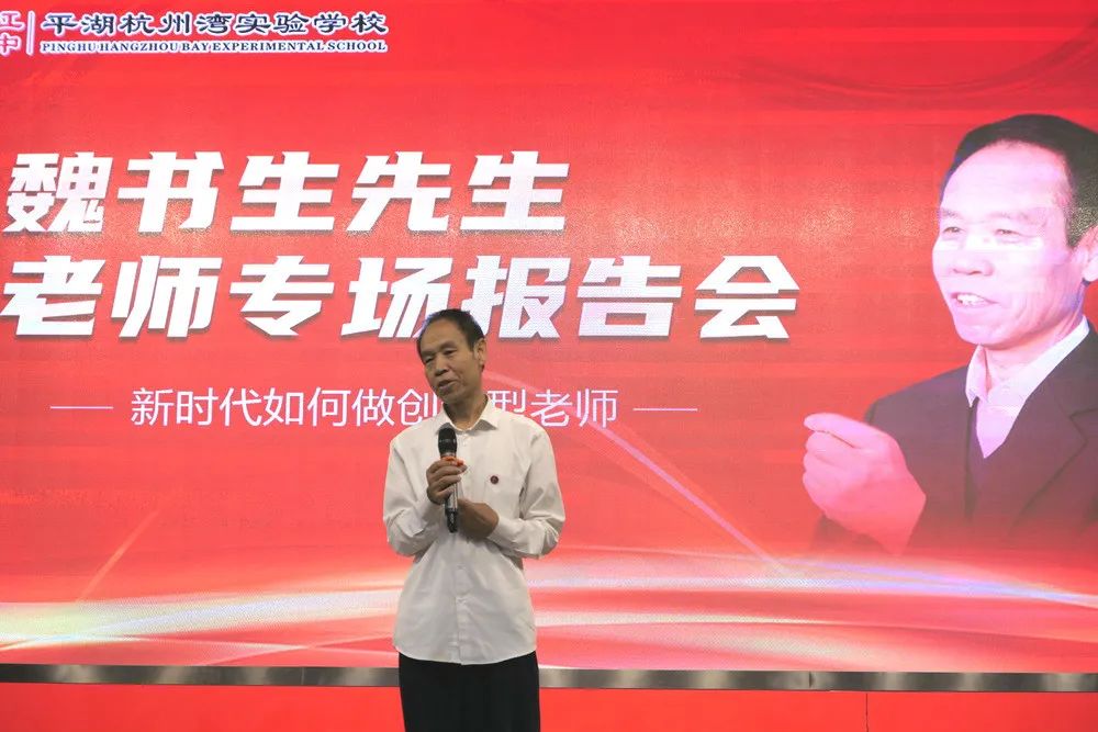 2020年9月15日上午,被喻為“穿西裝的孔子”的當代教育家魏書生來我校為全體教職工進行以“新時代如何做創(chuàng)新型老師”為主題的專場思想報告會。嘉興教育學院處長沈俊松先生,嘉興港區(qū)社發(fā)局文教衛(wèi)副書記顧巧明先生,平湖實驗小學教育集團黨委書記、總校長芮金良先生,乍浦高級中學黨總支書記、校長曹躍平先生,平湖實驗小學教育集團副總校長、毓秀小學校長湯麗英女士,平湖杭州灣實驗學校理事長肖家興博士,北大親子教育專家孫一鳴老師,海寧市南苑中學、嘉興市城南中學、嘉興市運河實驗學校、嘉興市城南小學等學校,以及平湖市、港區(qū)兄弟學校的老師們紛紛慕名而來,聆聽長者教誨。